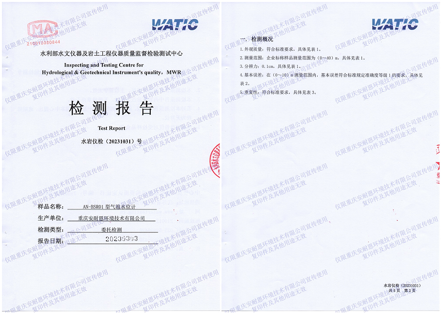 AN-BSR01型氣泡式水位計具有高精度、高可靠、高智能、免氣瓶、免測井、免維護、抗振動、壽命長的特點,特別適用于流動水體、大中小河流、水庫、或者水體污染嚴重和腐蝕性強的工業廢水等不便建測井或建井昂貴的場合,如:水利水文、大壩上下游、海洋、地下水水位、石油、化工、污水處理廠、城市排水泵站等監測。