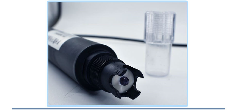 pH傳感器使用玻璃指示電極和參比電極組合在一起的復(fù)合電極來測量水質(zhì)的pH值。玻璃電極中內(nèi)參比電極的電勢是恒定的,與待測溶液的pH無關(guān)。當(dāng)玻璃泡浸沒在H+濃度變化的被測溶液中,參比電極的穩(wěn)定電勢與玻璃球產(chǎn)生的電勢形成的差值將被電壓計讀取并作為測量結(jié)果。
