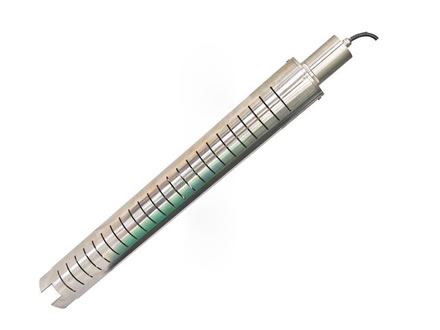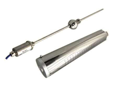 磁致伸縮液位傳感器主要由測桿、電子倉和套在測桿上的非接觸磁浮球組成。測桿內裝有 磁致伸 縮線(波導絲),測桿由不導磁的不銹鋼管制成。測量時電子倉發出起始脈沖,起始脈沖 在波導絲中傳輸,產生沿波導絲方向的旋轉磁場,當這個磁場與浮球中的永久磁場相遇時,產 生磁致伸縮效應,使波導絲發生扭動,這一扭動被電子拾能機構所感知并轉換成相應的電流脈 沖,測量電路計算出兩個脈沖之間的時間差,即可精確地測出被測液位值。